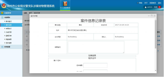 梧州市交警支队涉案信息管理系统——员工参与实际工程项目